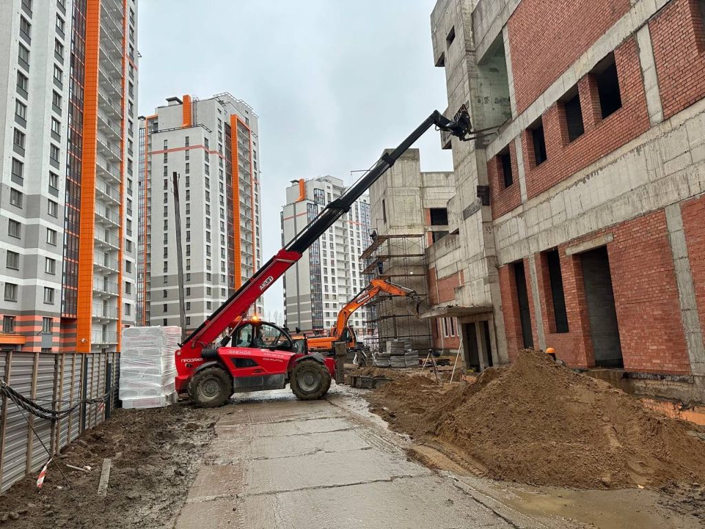 Привезли материалы для разгрузки, а площадка — рыхлый грунт после дождя, уклон и ограничения из-за стопок паллет, бетономешалки и строительного мусора. Обычный вилочный погрузчик здесь потеряет устойчивость или застрянет, будет стопориться при обхождении преград. Кран потребует выносных опор и подготовки основания. Телехендлер на полном приводе заедет туда, куда другая техника не рискнёт, подхватит груз и уложит в штабель без лишней подготовки.