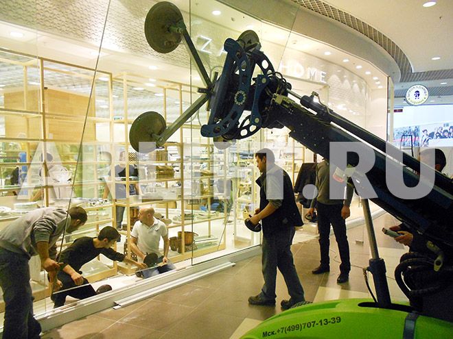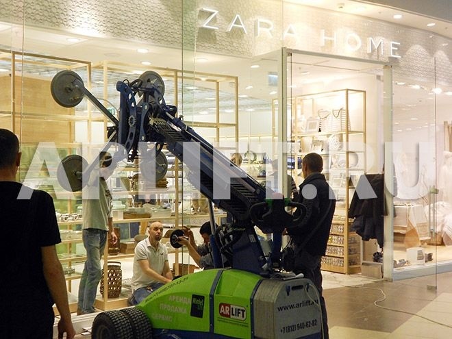 Монтажная компания взяла в аренду стеклоробот Winlet 575 для остекления витрин. Витражные стекла были установлены быстро и надежно, а у монтажников осталось море положительных эмоций от использования чудо-робота Winlet.