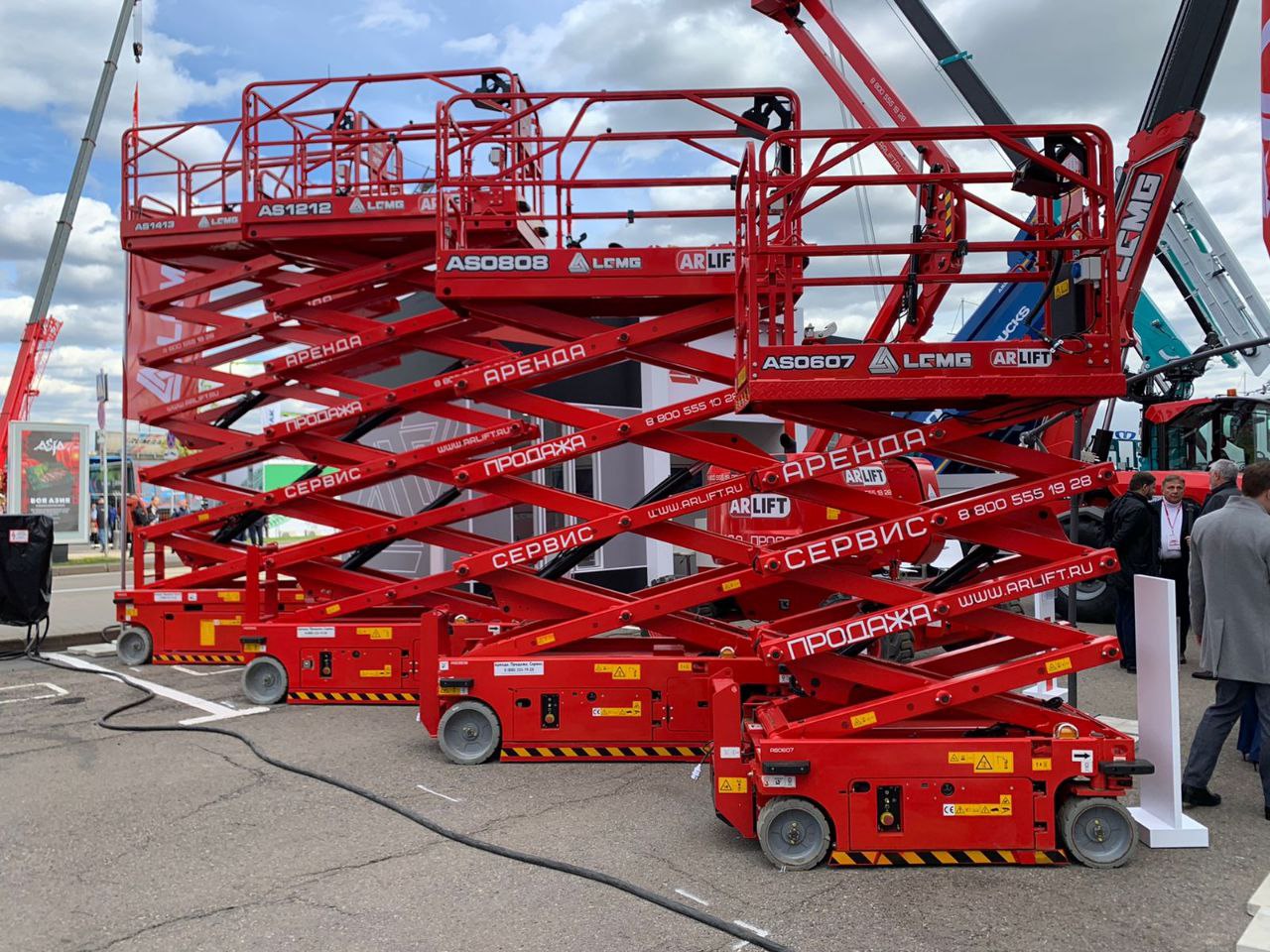 В этом году компания Арлифт вместе с партнером, производителем подъемников LGMG, представила электрические ножничные подъемники с рабочей высотой до 15.8 метров, а также коленчатый подъемник с рабочей высотой до 17.7 метров.