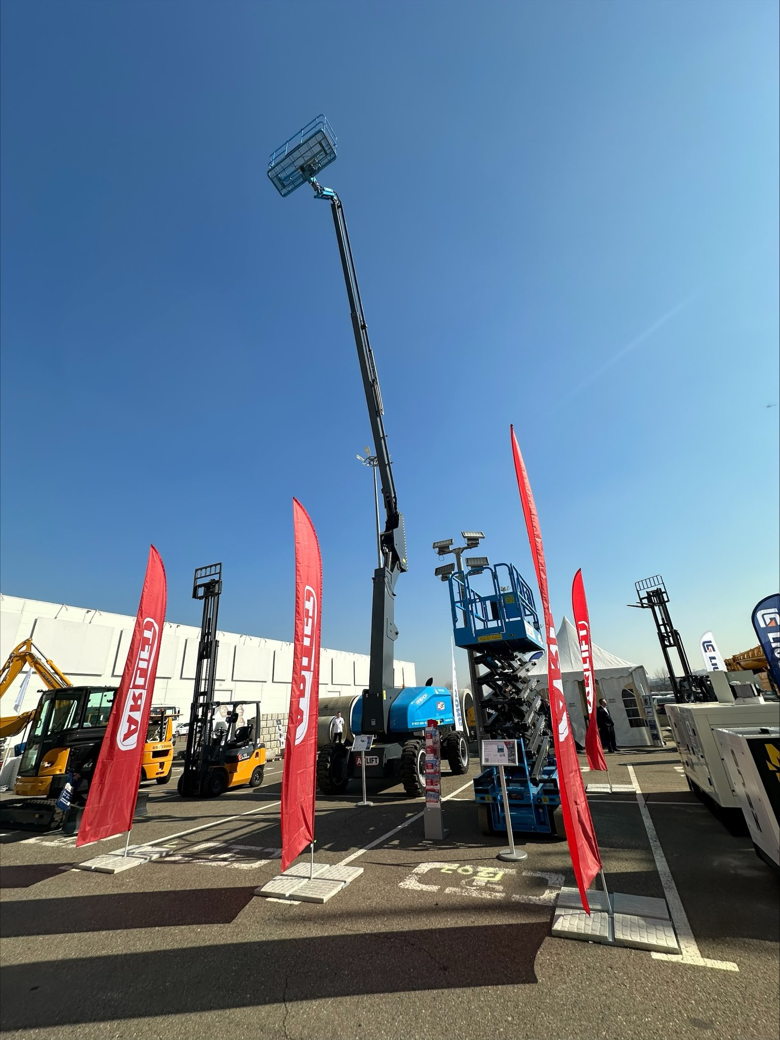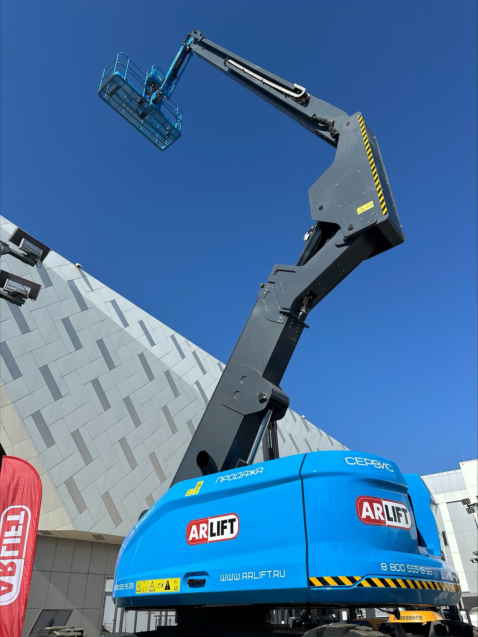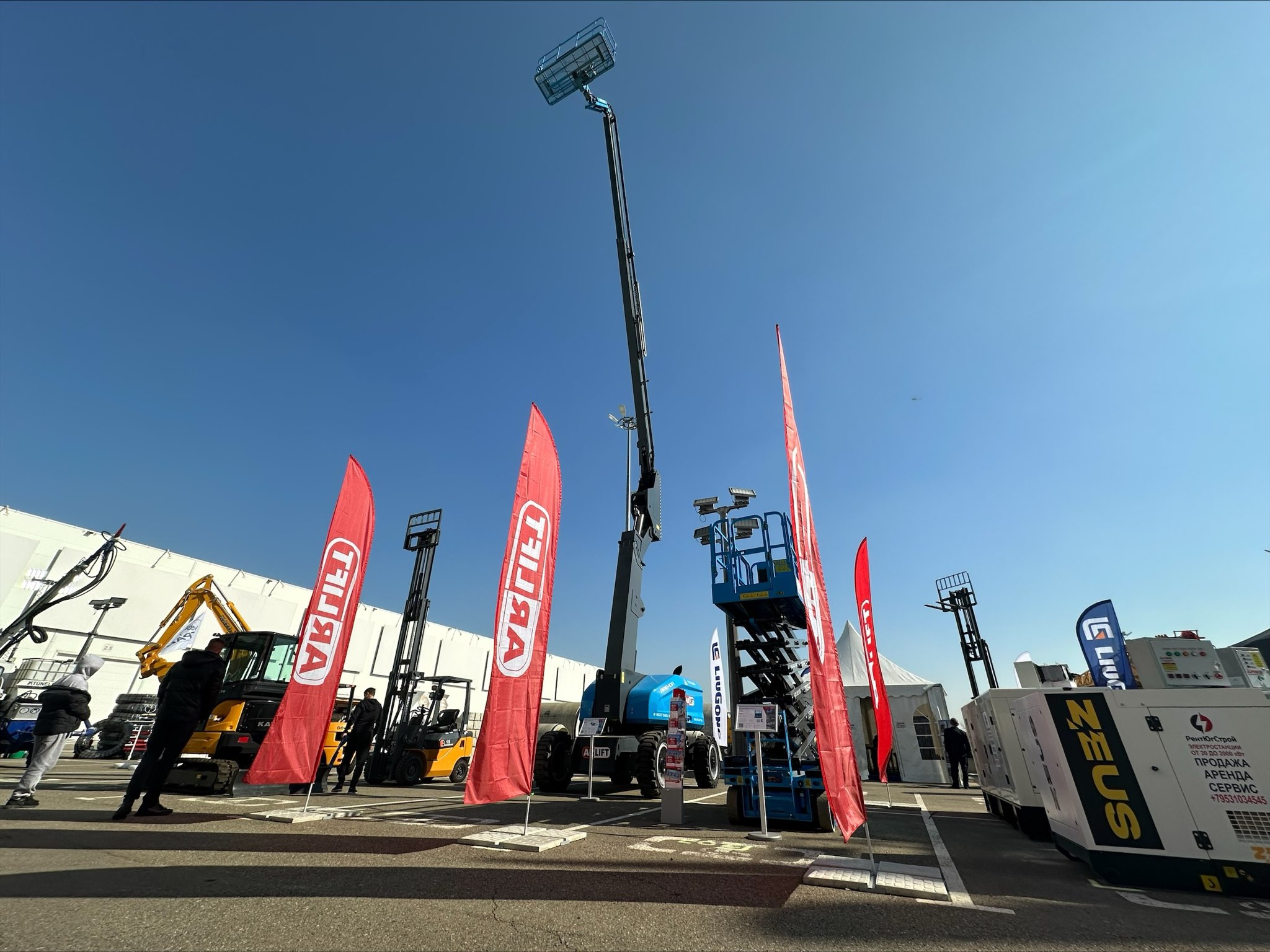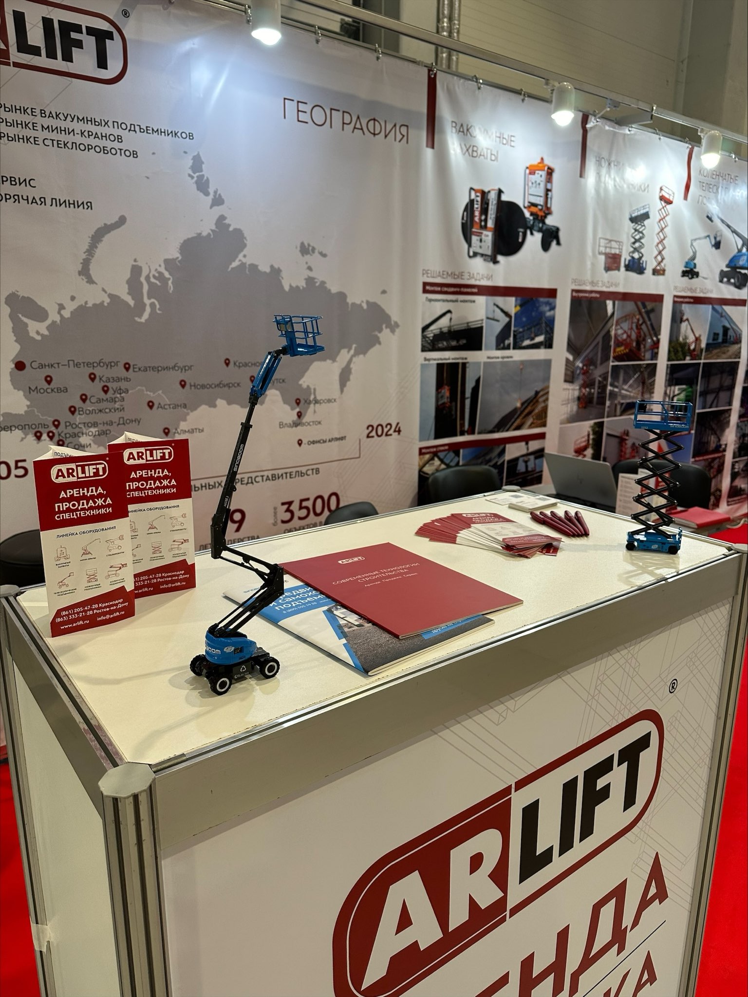 Помимо вакуумных захватов, незаменимых участников всех наших выставок, были представлены подъемники от производителя Sinoboom! Электрический ножничный подъемник с рабочей высотой 13,9 метров и коленчатый дизельный подъёмник с рабочей высотой 26,6 м уже зарекомендовали себя на различных строительных площадках страны. Проверенные нами, безопасные, современные подъёмники доступны как для продажи, так и аренды.