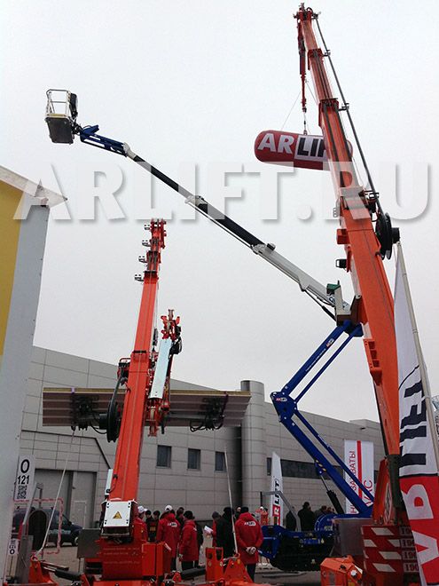 Особый интерес вызвала компактность вышки, которая при вылете стрелы 22 метра имеет минимальную площадь стабилизации аутригеров 1984 х 5671 мм, способна проехать в одностворчатую дверь и произвести работы как снаружи, так и внутри помещения.