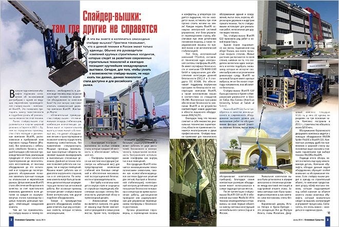 Журнал "Основные Средства" подготовил обзорную статью по спайдер-вышкам Bluelift в рамках СТТ 2014