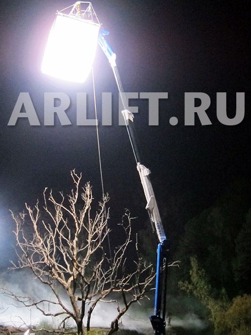 Спайдер-вышка BLUELIFT C22 работала на площадке кинокомпании «МАРС ФИЛЬМ» в Калужской области. На корзине спайдер-вышки был закреплен световой куб.
