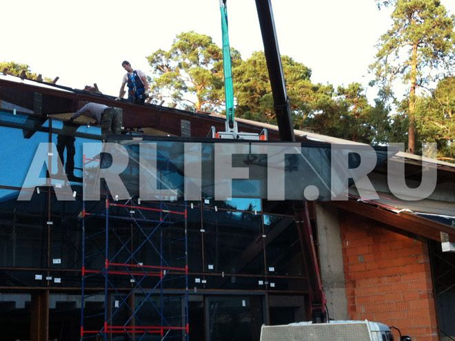 В конце августа был завершен монтаж уникального банного комплекса, расположенного в г. Сестрорецке. Для остекления сауны с бассейном использовался вакуумный подъемник Glass Boy 500.