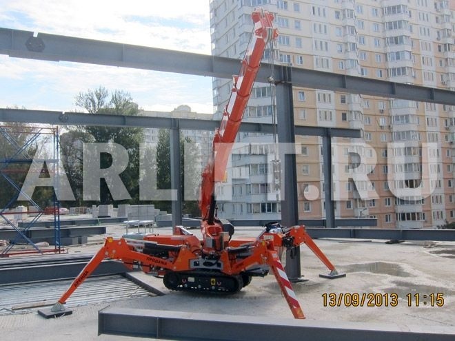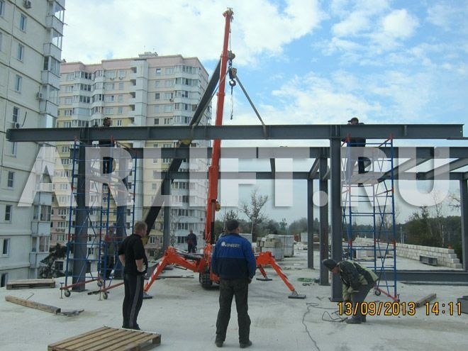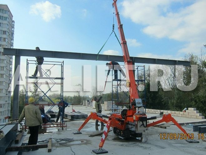 Мини-кран JEKKO SPD360 был привлечен на строительство торгового центра в г. Железнодорожный. Была поставлена задача смонтировать металлоконструкции на перекрытии.