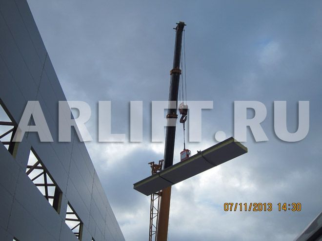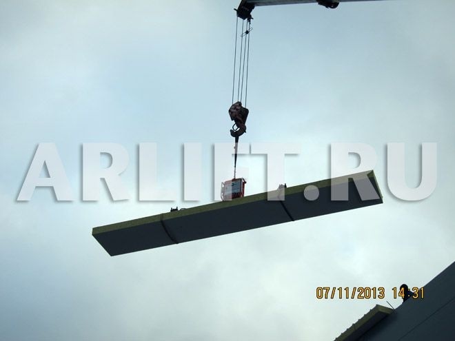 Ранее для монтажа стеновых панелей монтажная компания использовала струбцины, но устаревшая конструкция не смогла обеспечить желаемый результат. Начали искать альтернативные решения и остановились на современной вакуумной технике компании «Арлифт». Перед подъемником стояла задача смонтировать кровельные сэндвич-панели длиной до 6,7 м, весом 210 кг. Cladboy 4 в комплектации «кровля» легко справился с этой задачей, показав отличные результаты. Монтажная организация осталась довольна и на месте приняла решение об аренде оборудования.