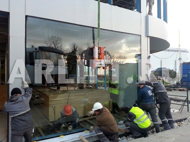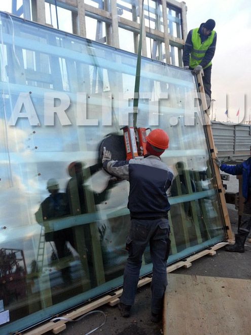 Для монтажа сэндвич-панелей и стекла весом до 850 кг использовался вакуумный подъемник GlassBoy 850.