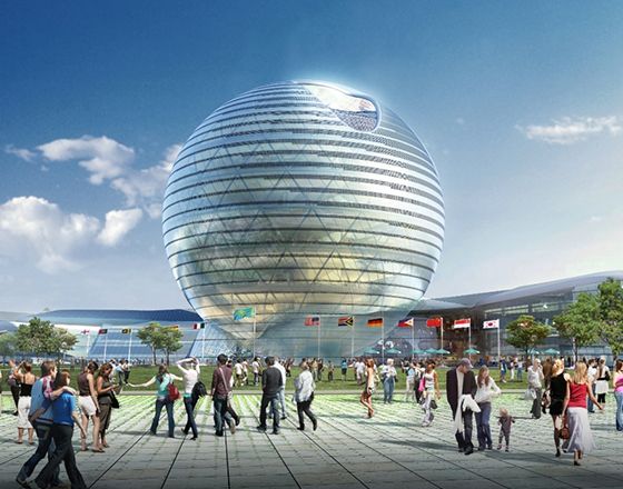 Стеклянный шар является центральным зданием выставочного комплекса «Экспо».