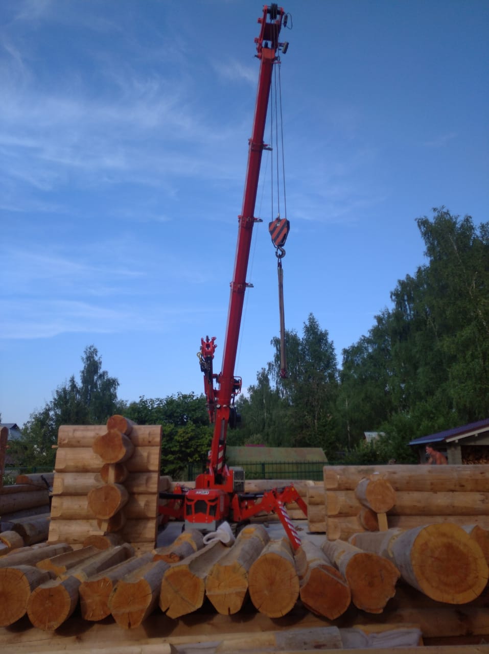 Дома из оцилиндрованного бревна являются экологичной альтернативой каркасным и газобетонным строениям. Помимо этого, к их преимуществам можно отнести энергоэффективность, а также простоту и скорость сборки, особенно, когда за дело берется мини-кран Арлифт. Монтаж бревен весом до 1,5 тонн был закончен всего за 4 дня.