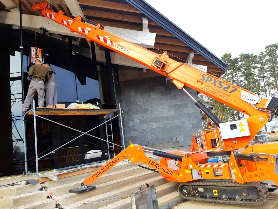 Спецтехника компании Арлифт: мини-кран SPX527 и вакуумный захват GS-500 без труда справились с данной задачей.