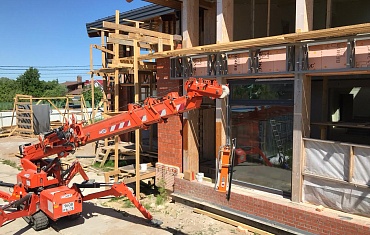 Мини-кран SPX527 и вакуумный захват Arlifter GS-850 помогли в остеклении частного дома в одном из пригородов Санкт-Петербурга.