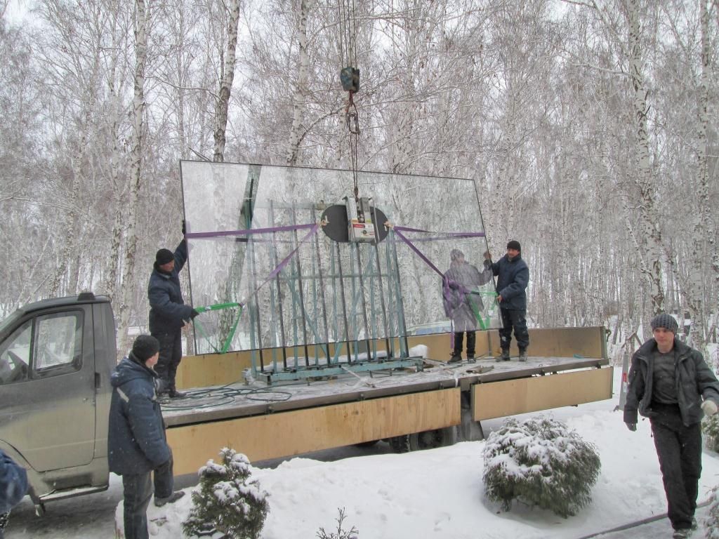 Монтаж стекла 4,8 х 2,5 метров (510 кг).