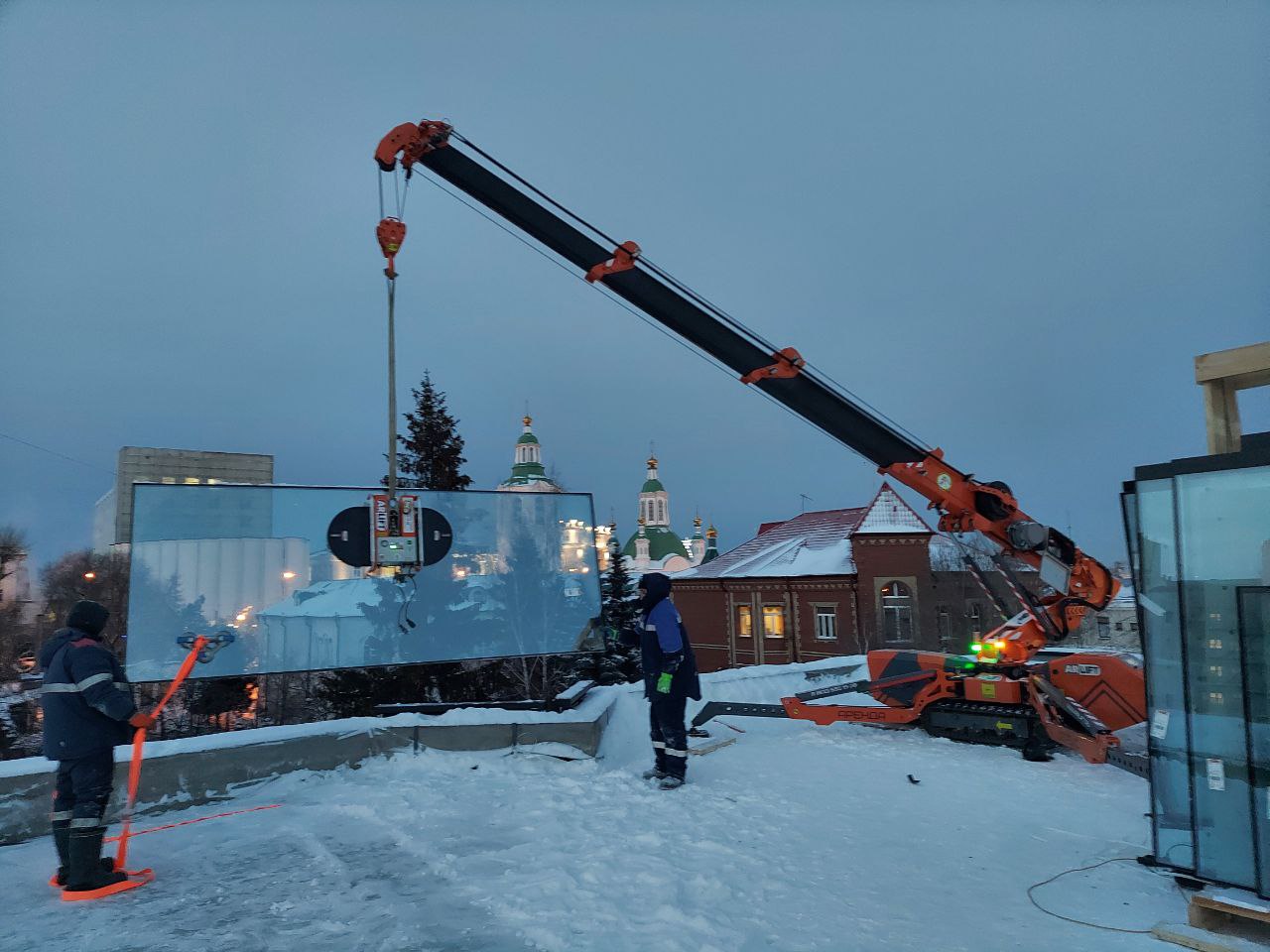 Во-вторых, за дни монтажа температура в Тюмени упала до −28°C. В таких условиях вакуумный захват и мини-кран могли бы продолжить работать без проблем, но аутригеры теряли стабильность. Их температурный максимум ниже.
