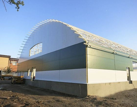 Монтаж ограждающих конструкций в виде сэндвич-панелей проведен в течение четырех дней.