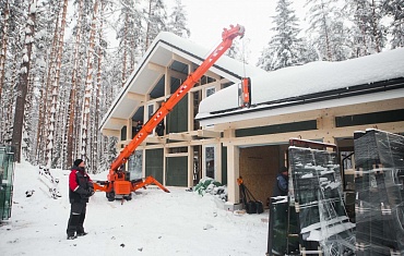 Монтаж стекла в ТЦ. Спайдер-вышки Ommelift