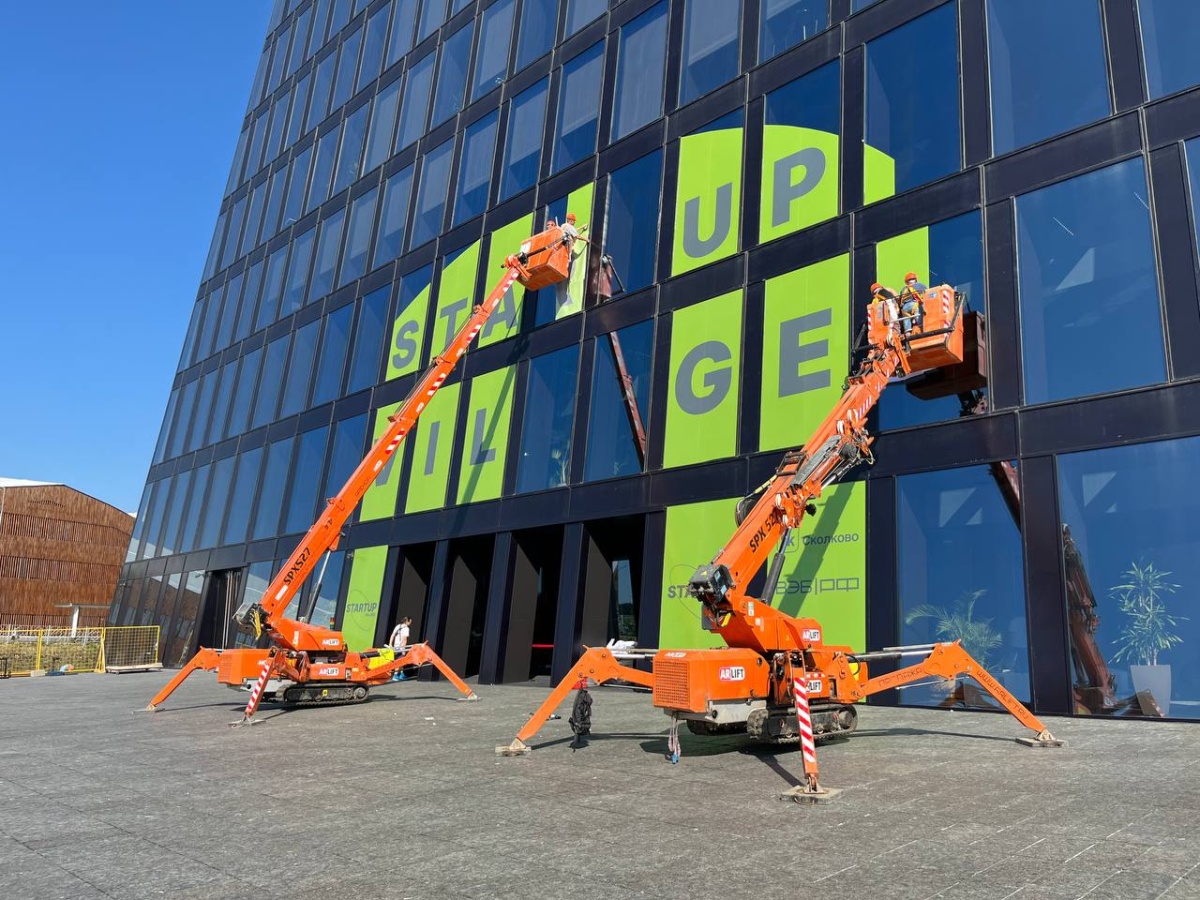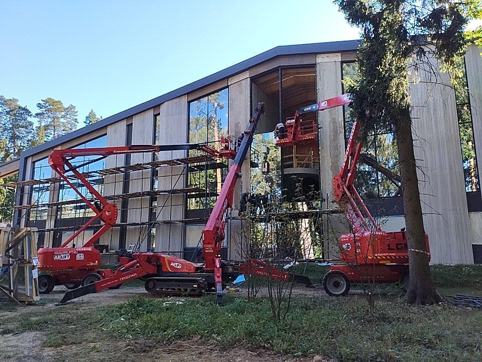 Оклейка фасада с помощью мини-кранов Арлифт и доп. оборудования