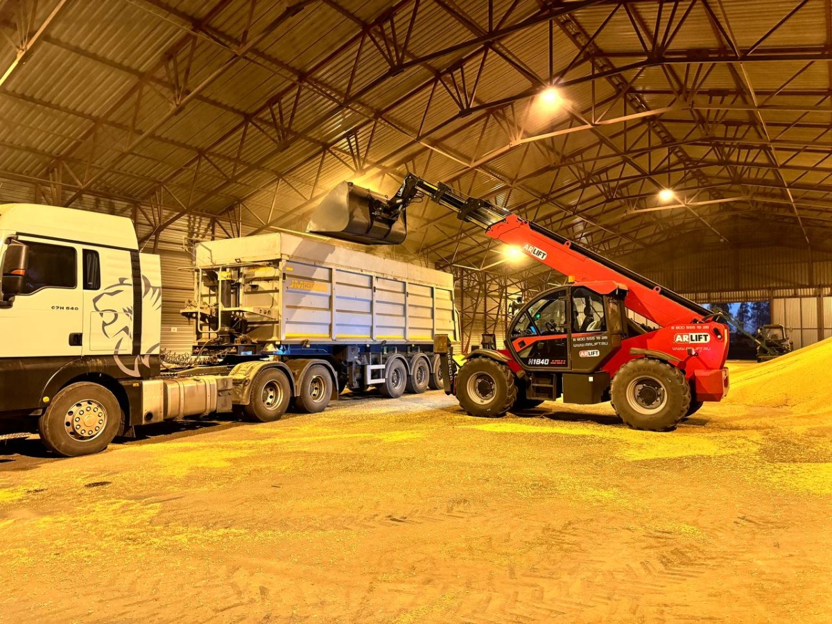 Зерновые работы с помощью телескопических погрузчиков Арлифт