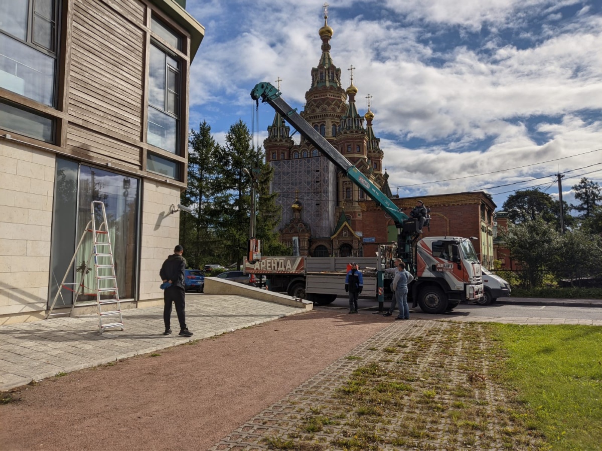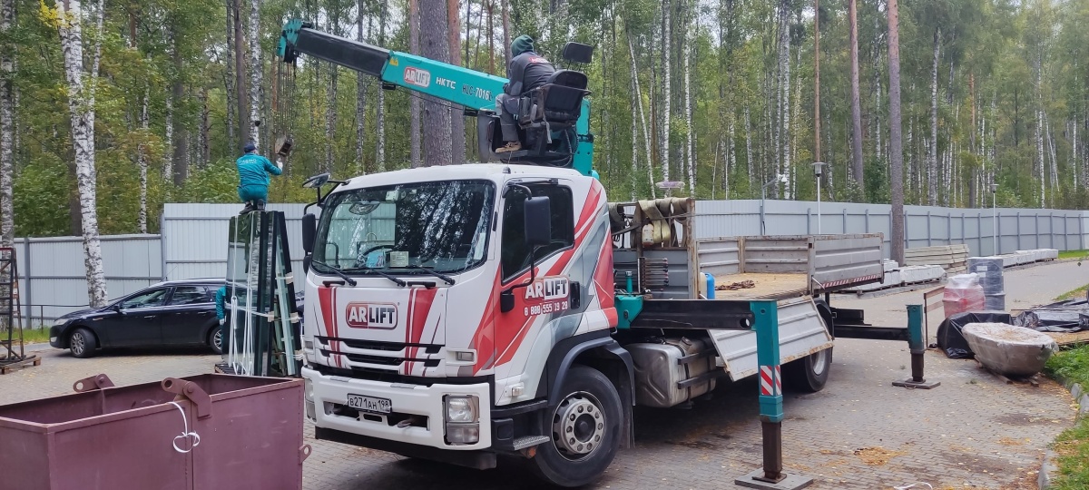 Монтаж стеклопакетов с помощью КМУ и вакуумного захвата