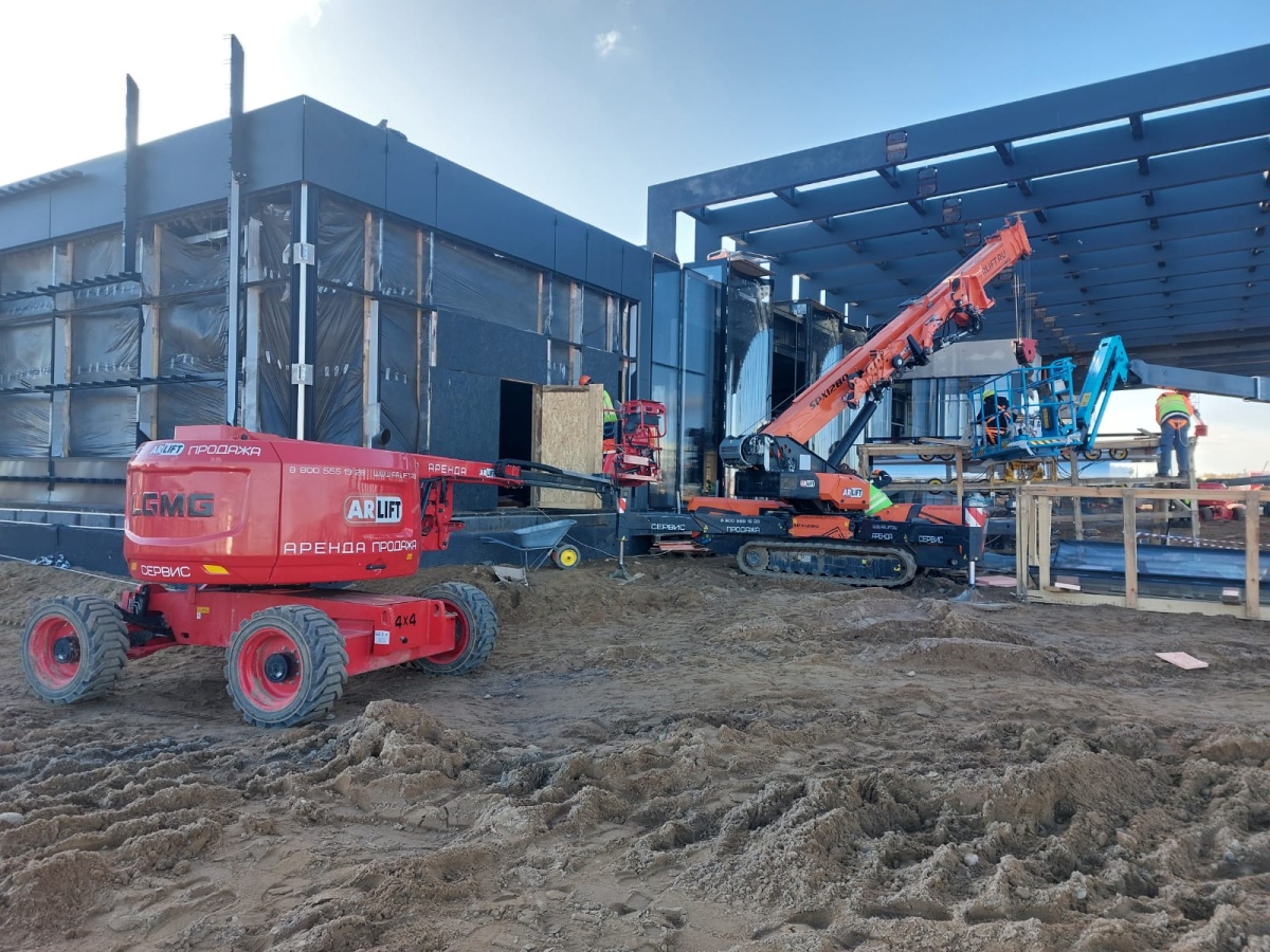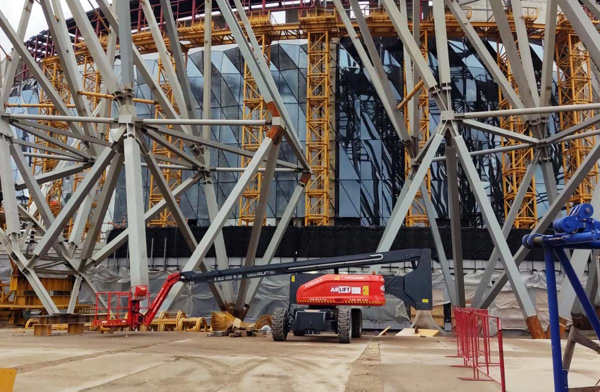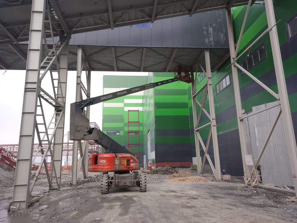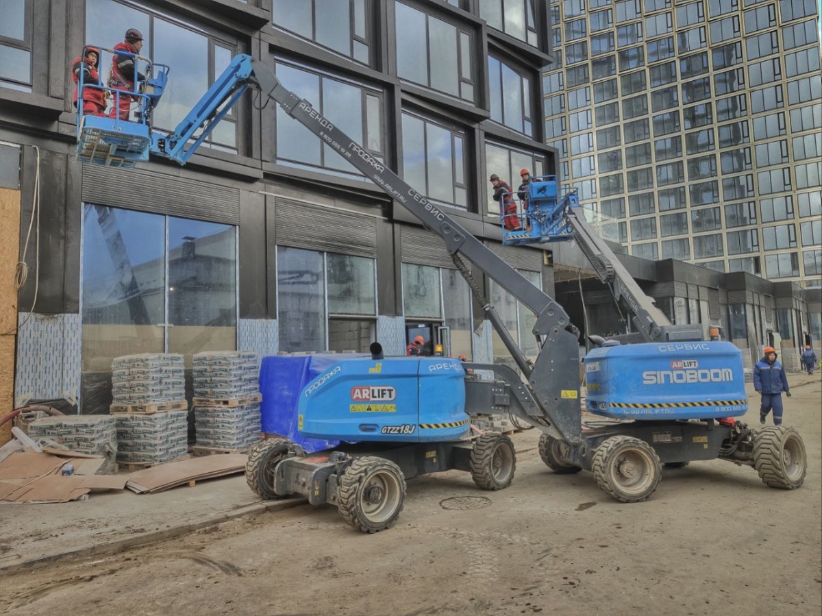 Фасадные работы с помощью коленчатых подъемников Арлифт