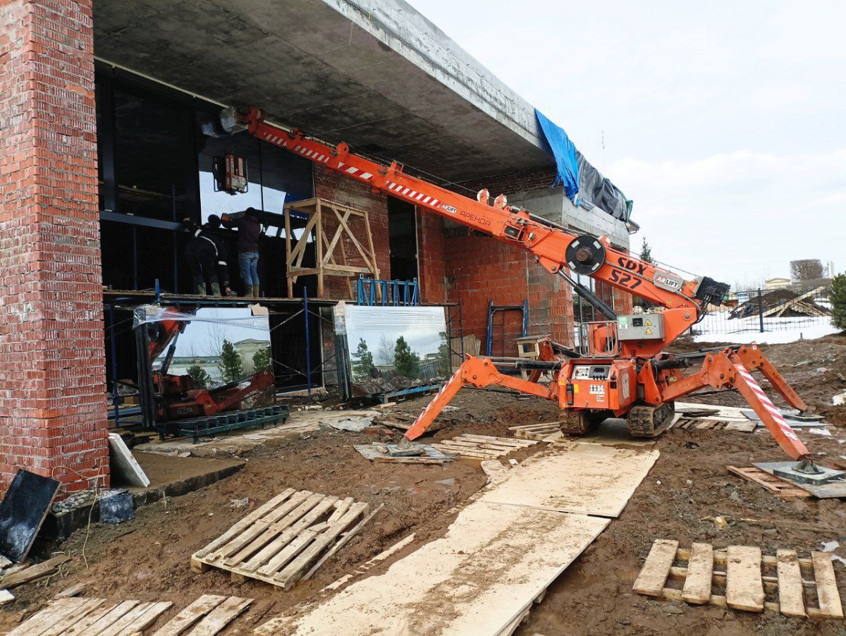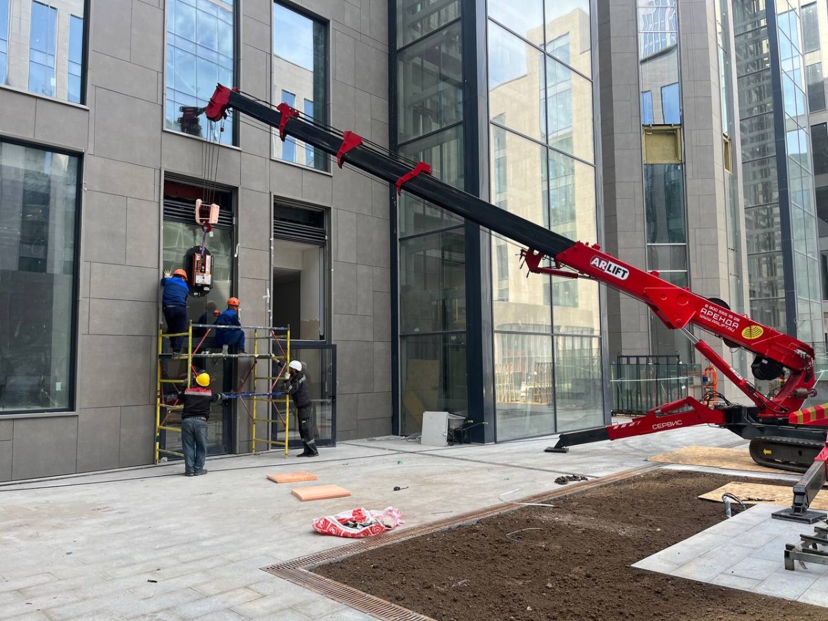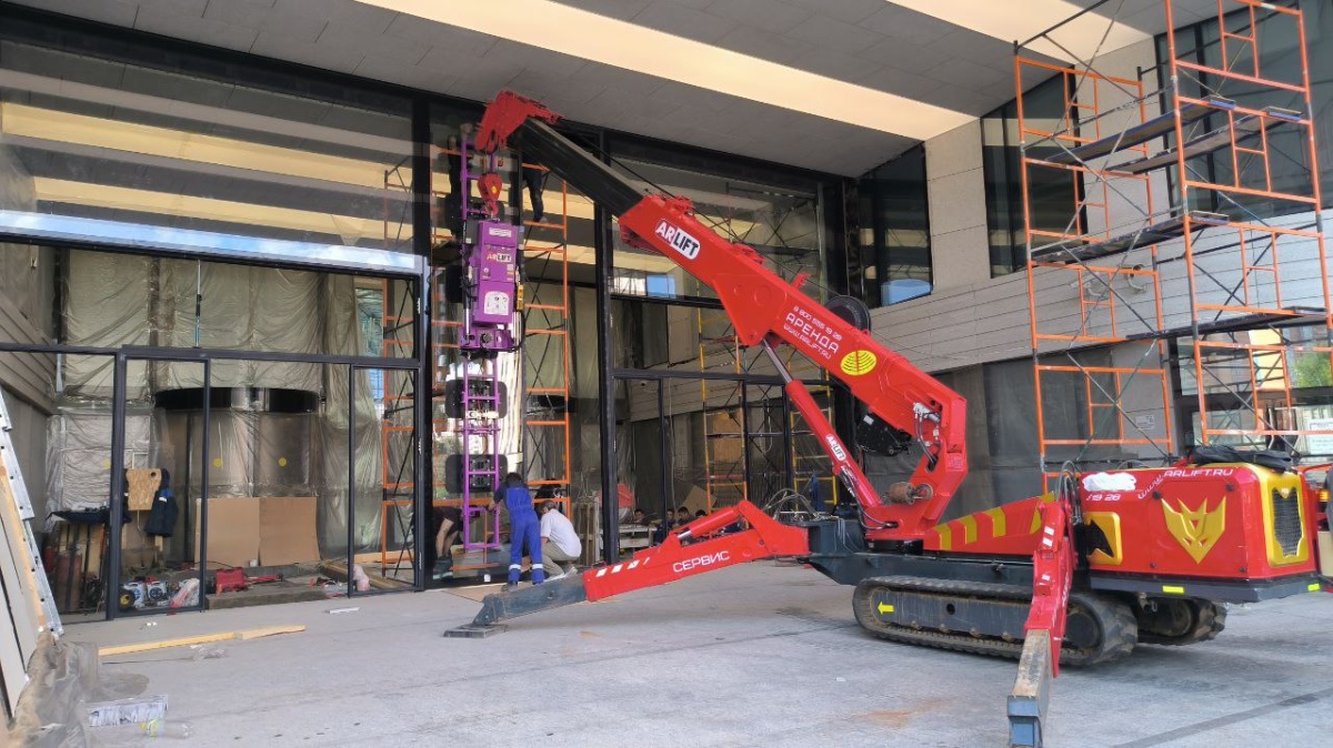 Мини-кран паук и вакуумный захват Арлифт на работах в Москве