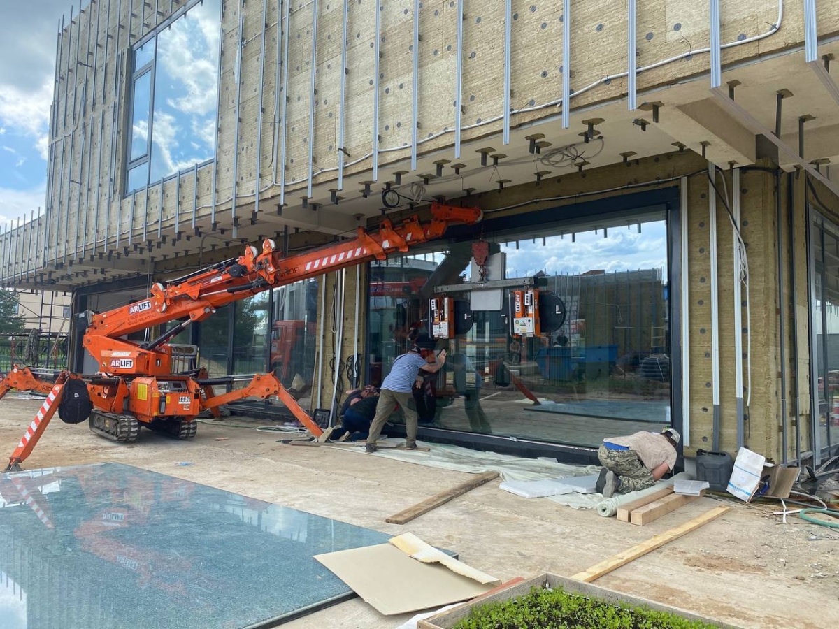 Вакуумный захват и мини-кран Арлифт помогают в крупногабаритном остеклении
