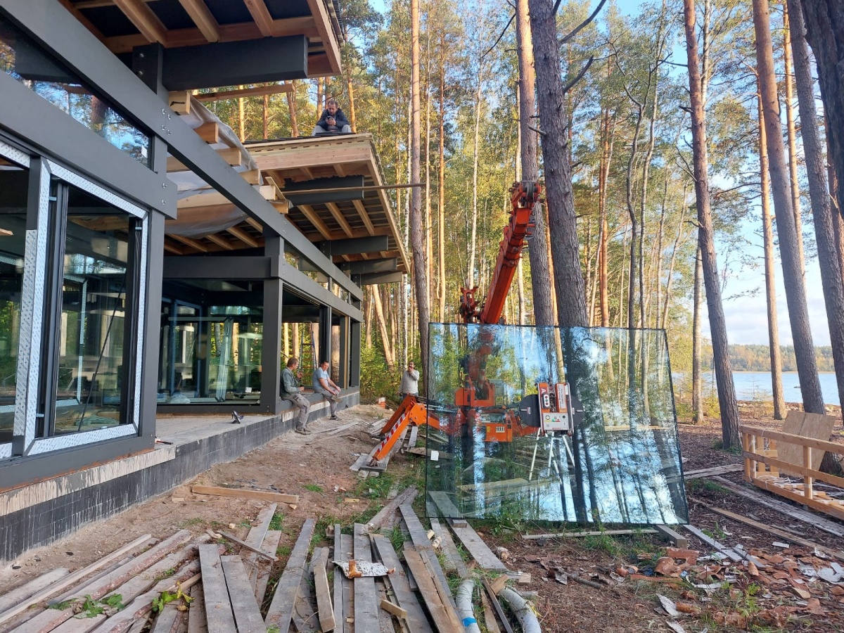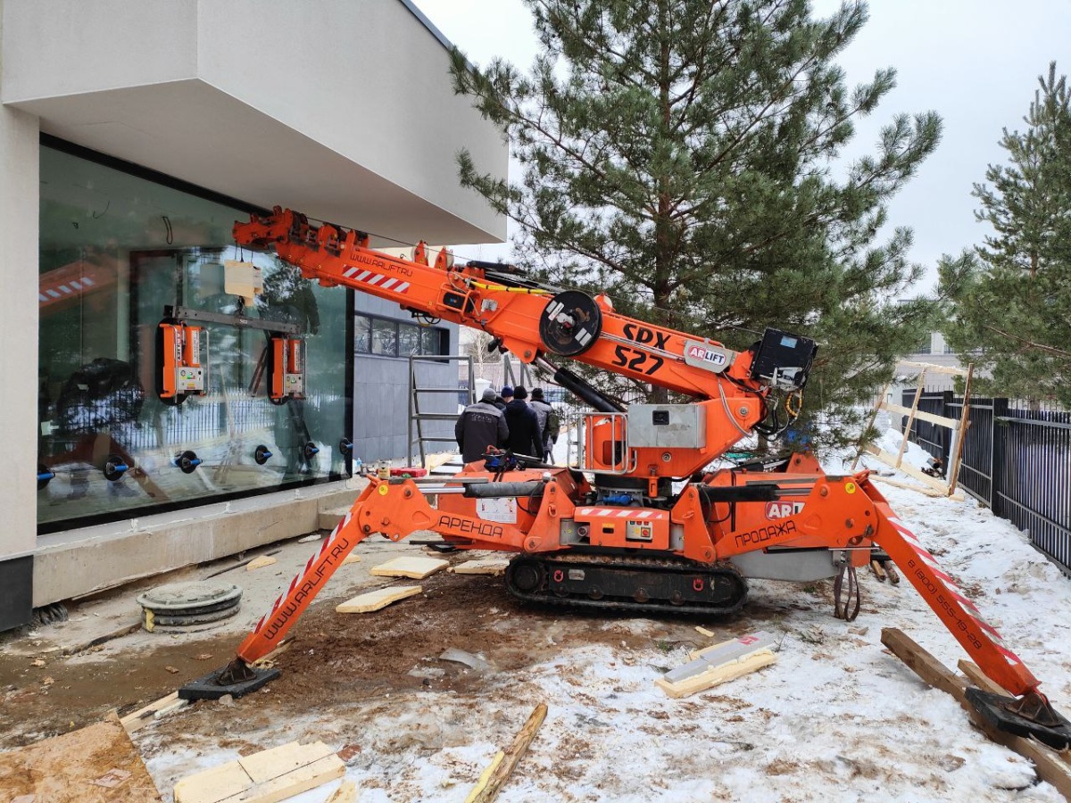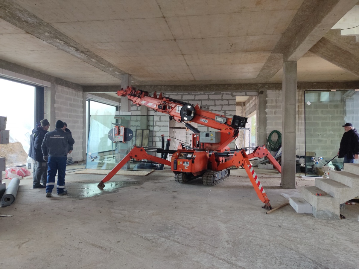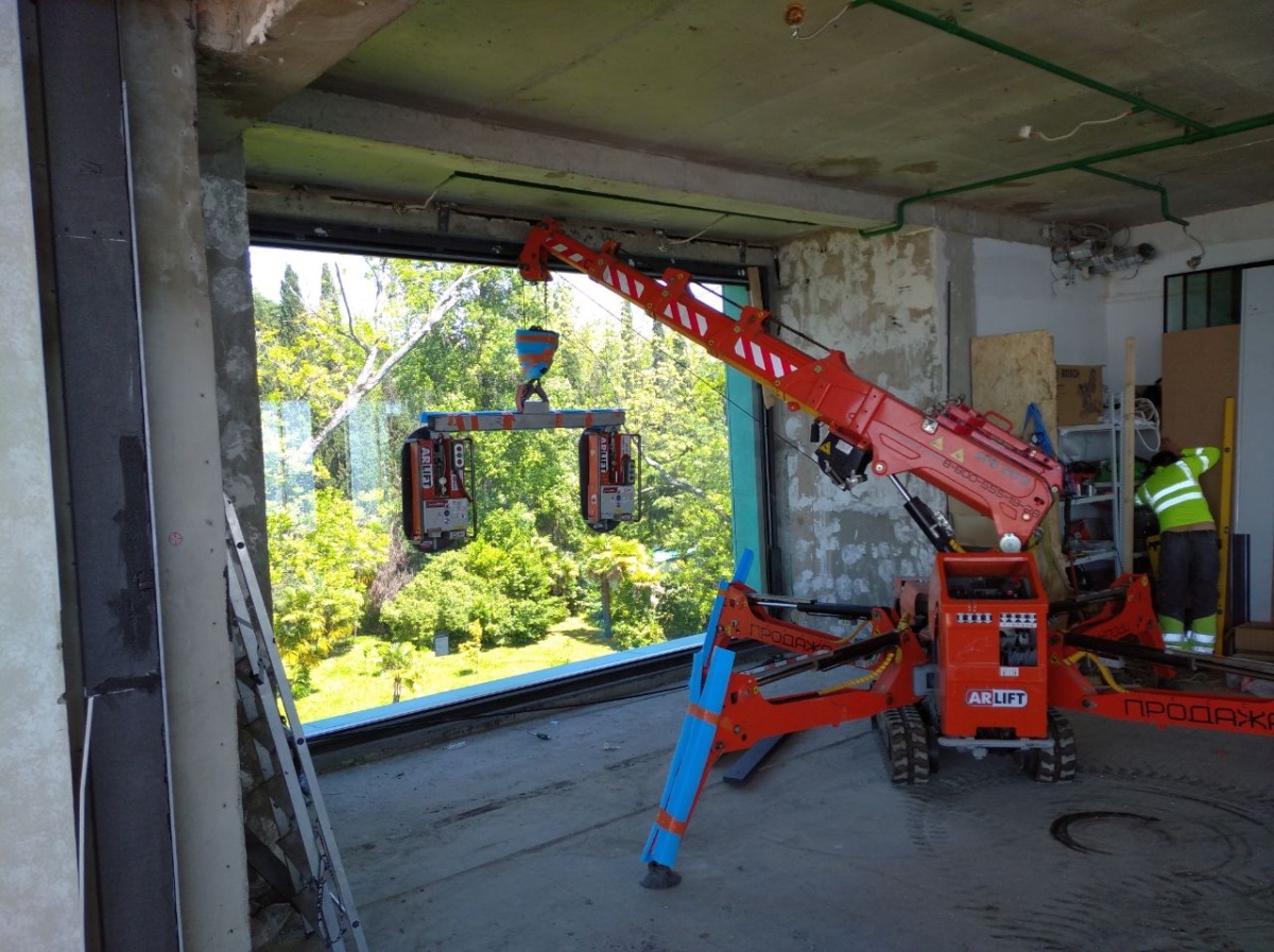 Монтаж стекла изнутри. Мини-кран и вакуумный захват Арлифт
