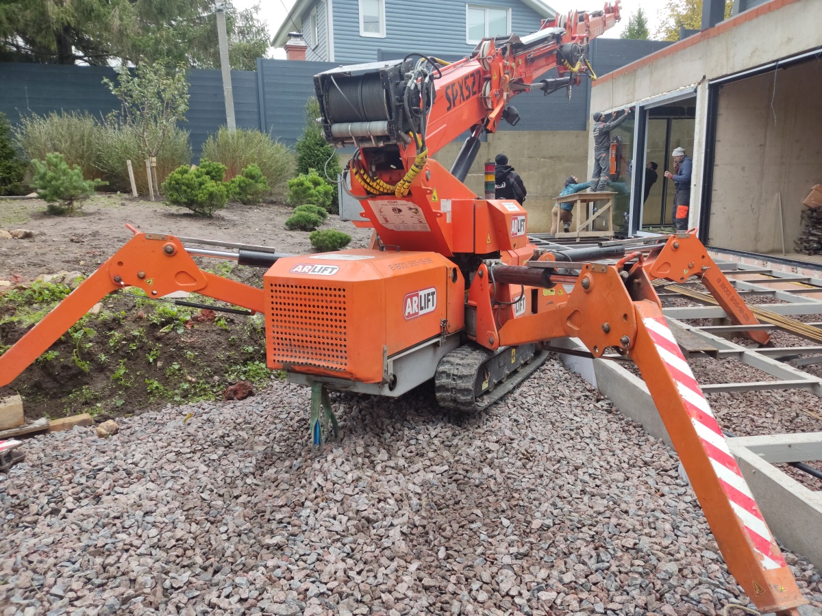 Остекление на неровной поверхности с помощью мини-крана Арлифт