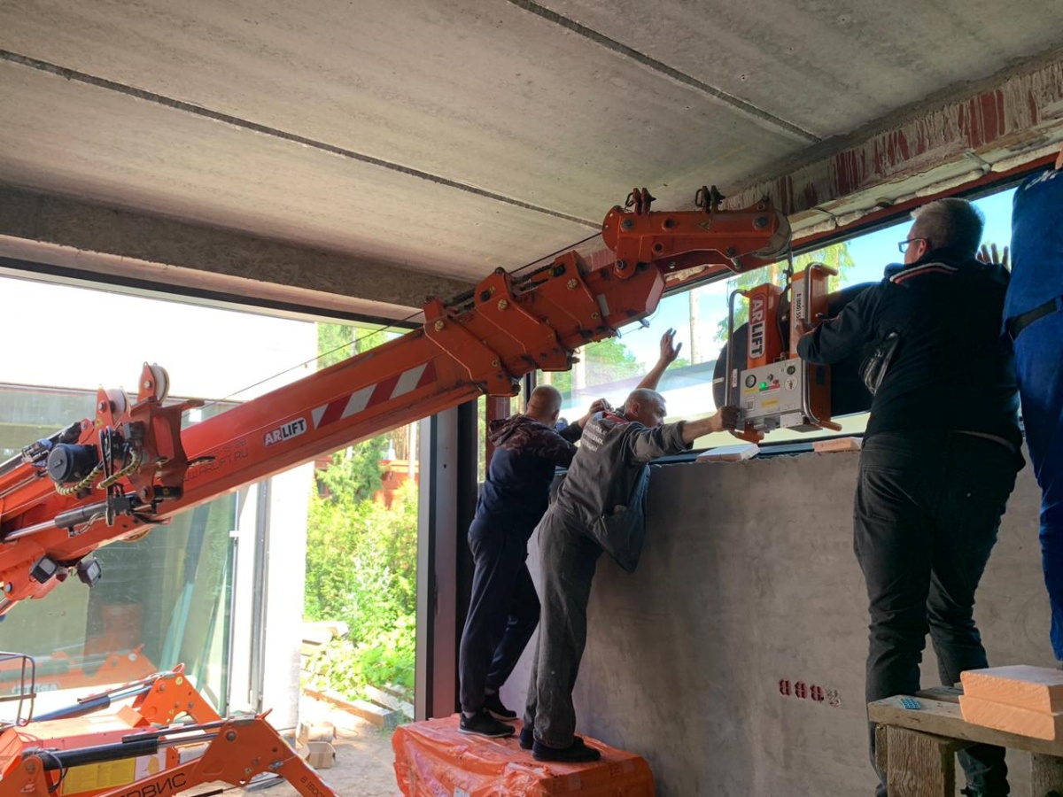 Остекление частного сектора с помощью мини-крана Арлифт
