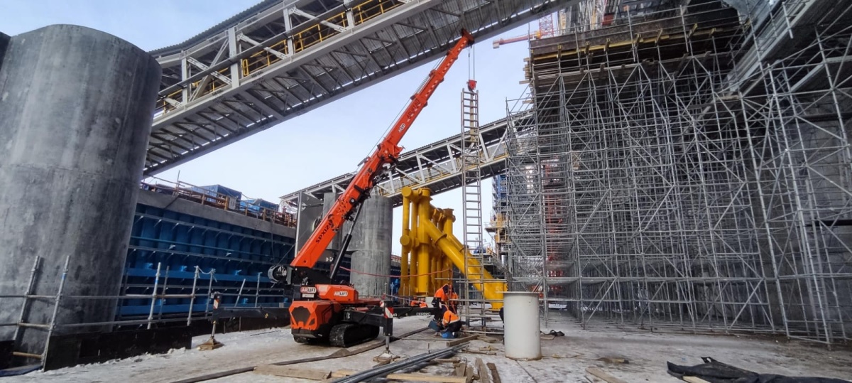 Монтаж металлоконструкций с помощью мини-крана Арлифт