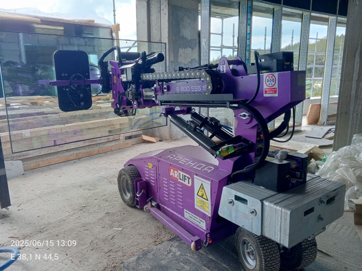 Монтаж стеклопакета стеклороботом Арлифт