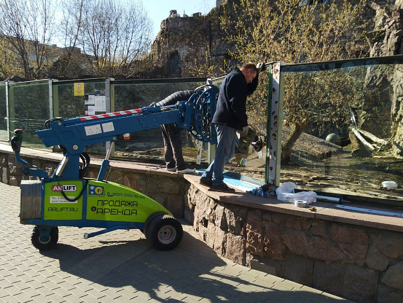 Замена стекол в вольере с помощью стеклоробота Арлифт