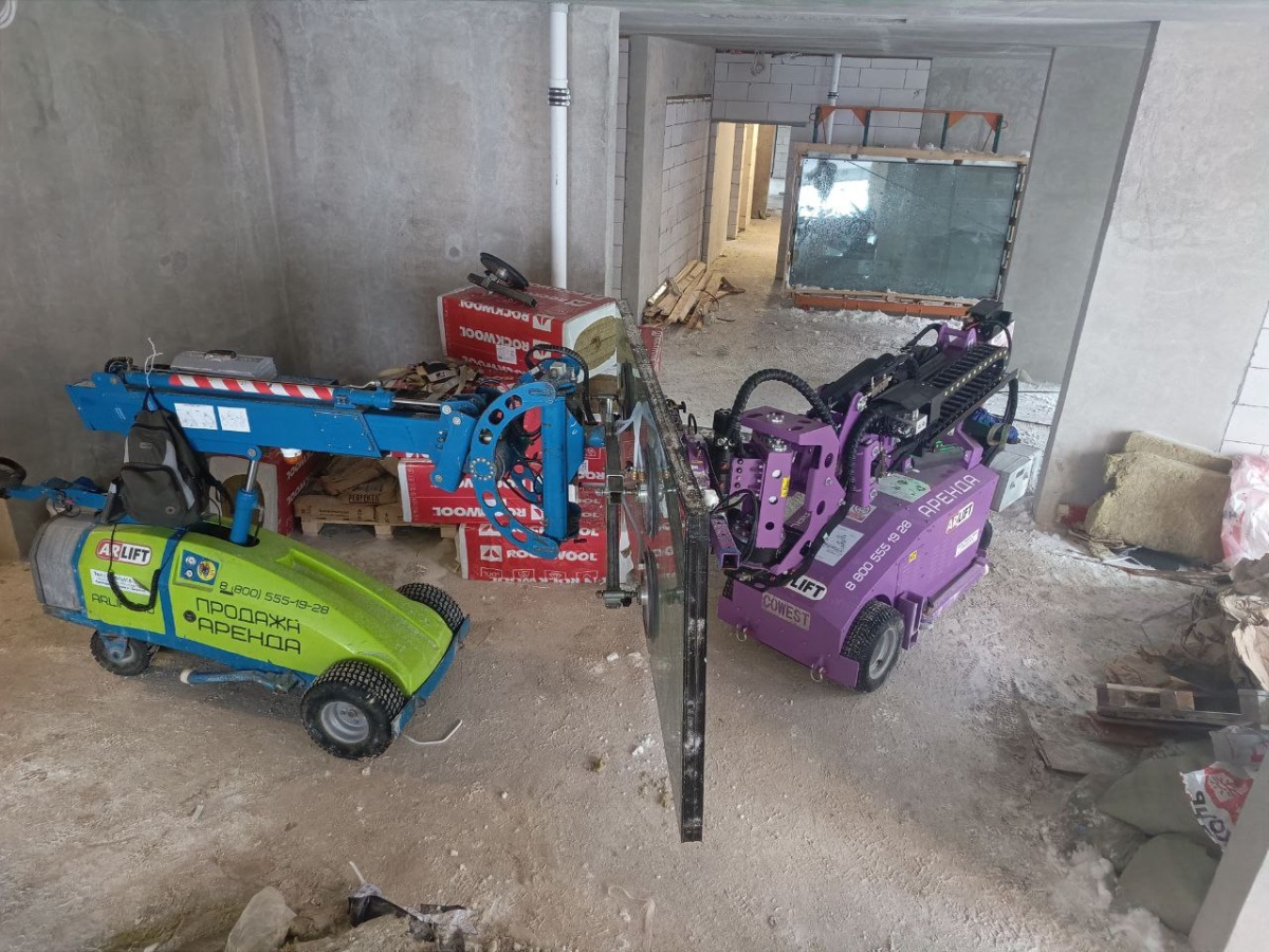 Работа внутри помещения стеклороботов Арлифт