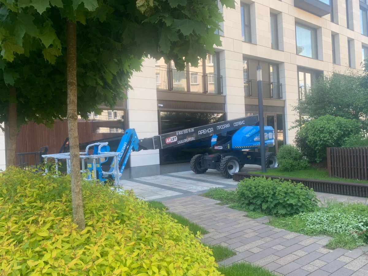 Монтаж стеклопакетов телескопическим подъемником, мини-краном и вакуумным захватом Арлифт