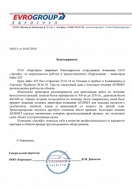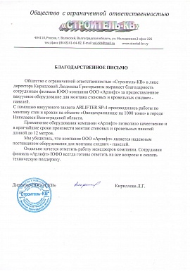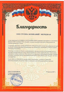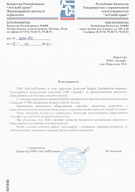 Благодарственное письмо от ТОО "Индустриальная компания"