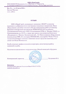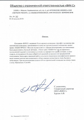 Отзыв от ООО "Интериум Эс.эр.эл."