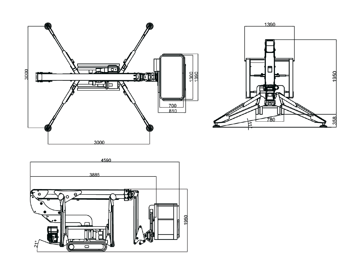 4590 х 2000 х 780 мм
