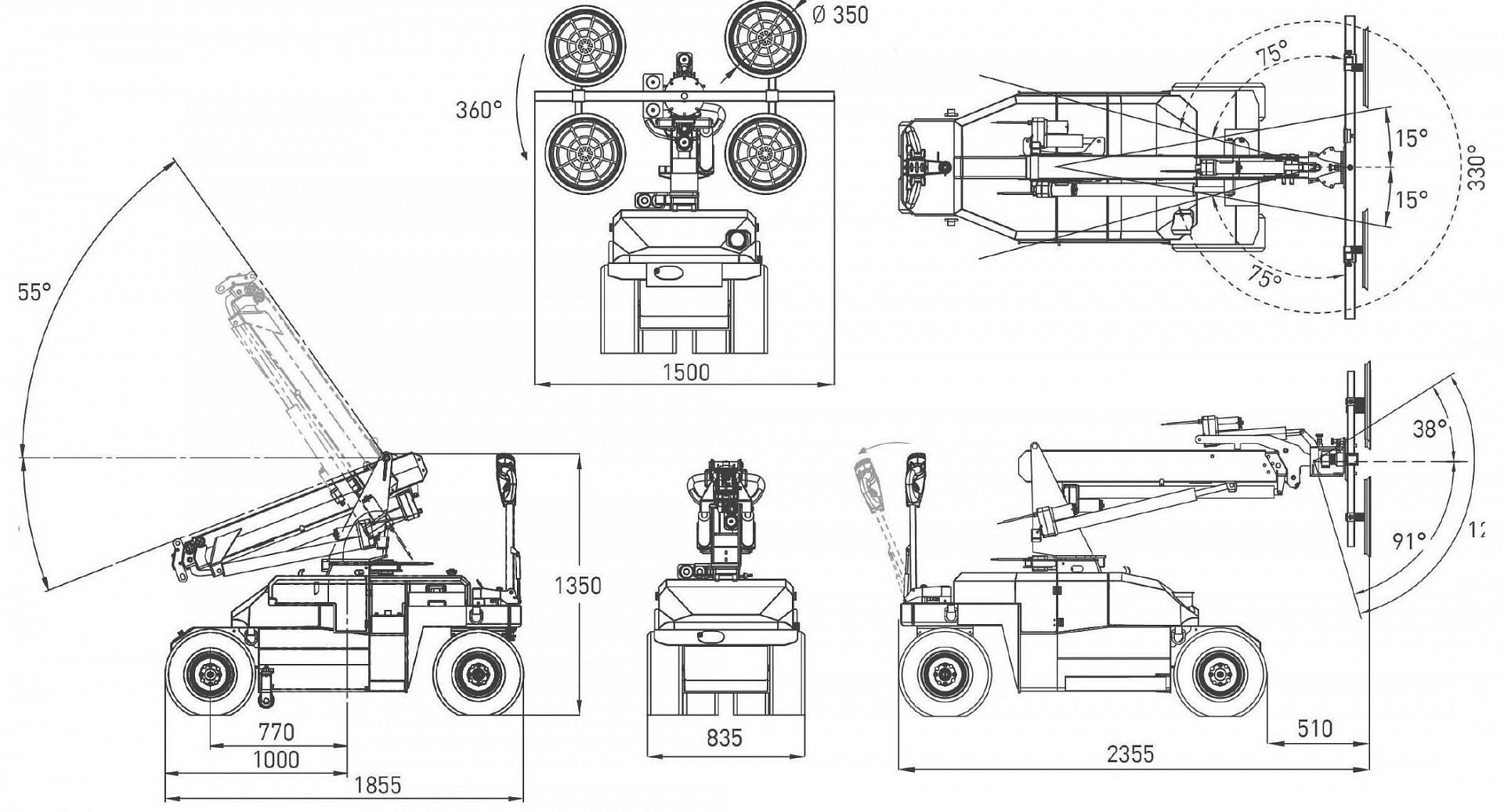 1855 х 835 х 1350 мм