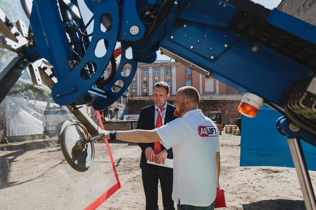 Впервые в городе на Неве мы представили экспозицию всех видов техники: мини-краны, вакуумные захваты, спайдер-вышки, стеклороботы! И даже продемонстрировали возможности нашего оборудования!