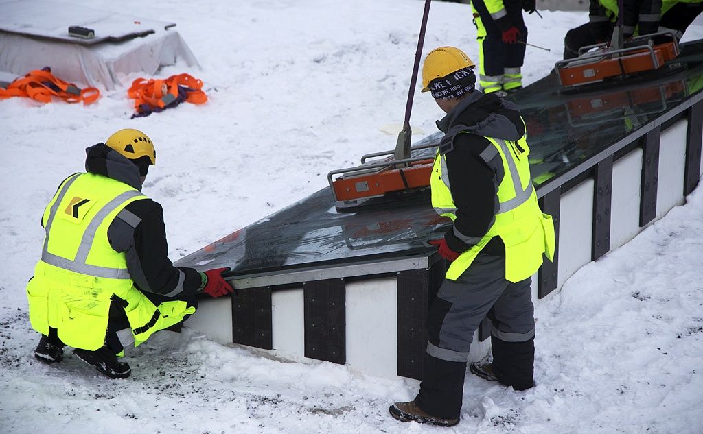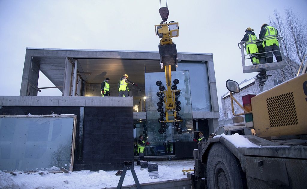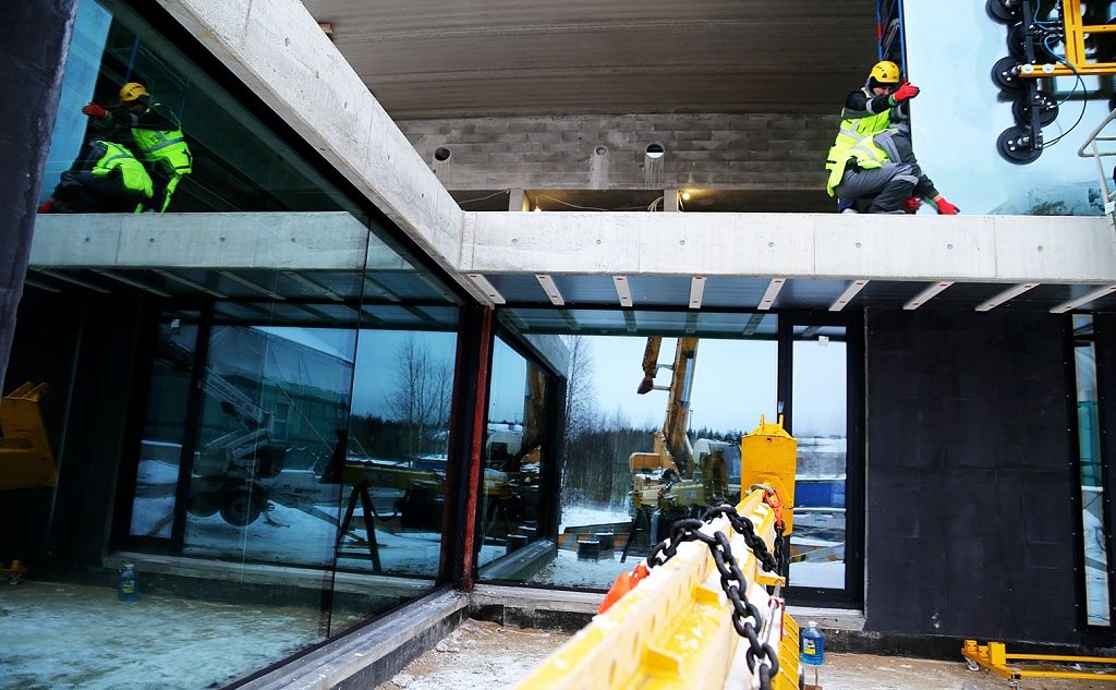 Монтаж стекла с помощью техники ARLIFT специалистами строительной компании KIVITALO был выполнен всего за два дня.