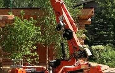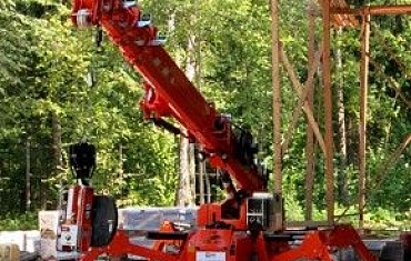 Благодаря своим универсальным характеристикам, обладая шириной всего 80 см, мини-кран JEKKO, легко работал в стесненных условия и смонтировал тяжелый брус разного калибра.