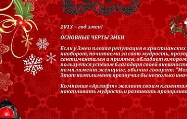 Компания ARLIFT поздравляет с наступающим Новым Годом. Наилучших пожеланий на новогодние каникулы и процветания вам в наступающем году!