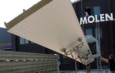 Компания ООО «КЕС» (Москва) первая в России протестировала новое уникальное оборудование вакуумный подъемник Rota Boy, позволяющее не только поднимать, но и переворачивать кровельные сэндвич-панели длиной до 18 метров.