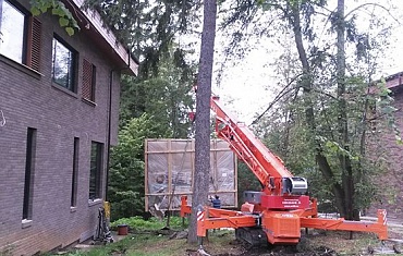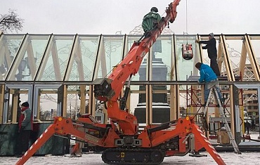 Работы по остеклению произведены с помощью мини-крана SPX1275.