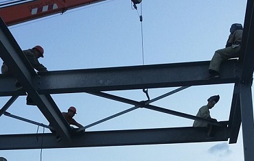 Монтаж металлоконструкций при строительстве пешеходного перехода через третье транспортное кольцо в Москве с помощью мини-крана SPX 527.
