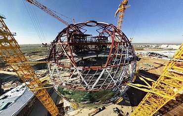 Стеклянная сфера "ЭКСПО 2017" станет крупнейшим в мире зданием в форме шара. Мини-краны JEKKO произвели остекление фасадов здания.