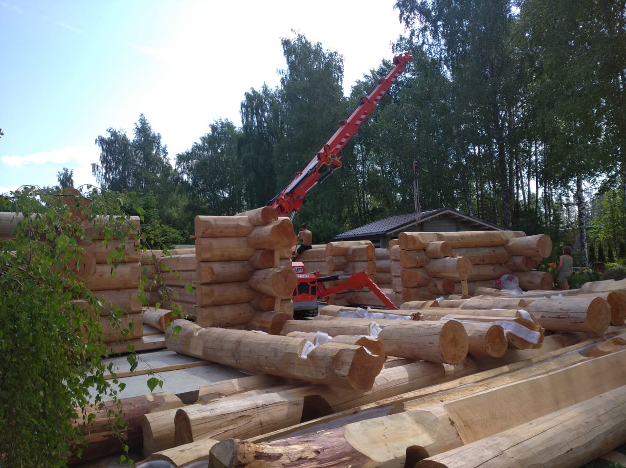 Дома из оцилиндрованного бревна являются экологичной альтернативой каркасным и газобетонным строениям. Помимо этого, к их преимуществам можно отнести энергоэффективность, а также простоту и скорость сборки, особенно, когда за дело берется мини-кран Арлифт. Монтаж бревен весом до 1,5 тонн был закончен всего за 4 дня.