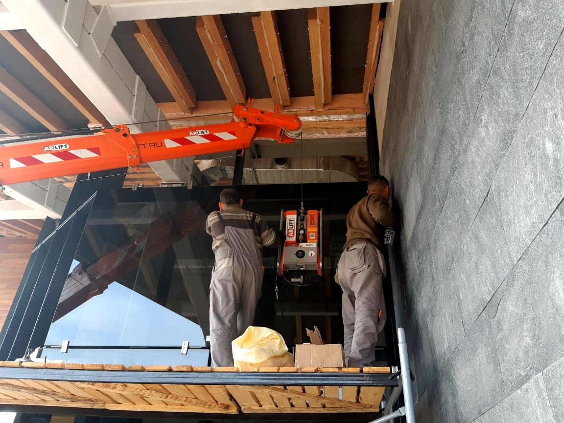1 день работы, бригада из 2 человек, вакуумный захват и мини-кран компании Арлифт понадобились подрядчику, чтобы произвести остекление в бане при загородном доме площадью более 10000 квадратных метров.