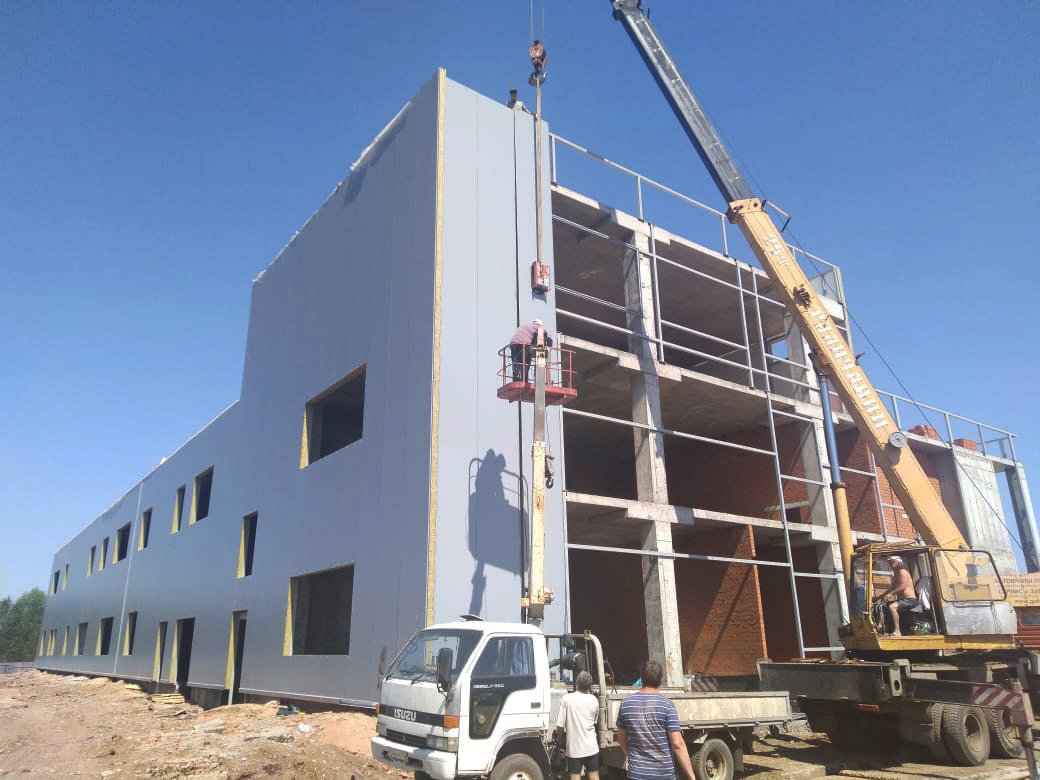 Наши объекты - Вертикальный монтаж длинных сэндвич-панелей в Уфе