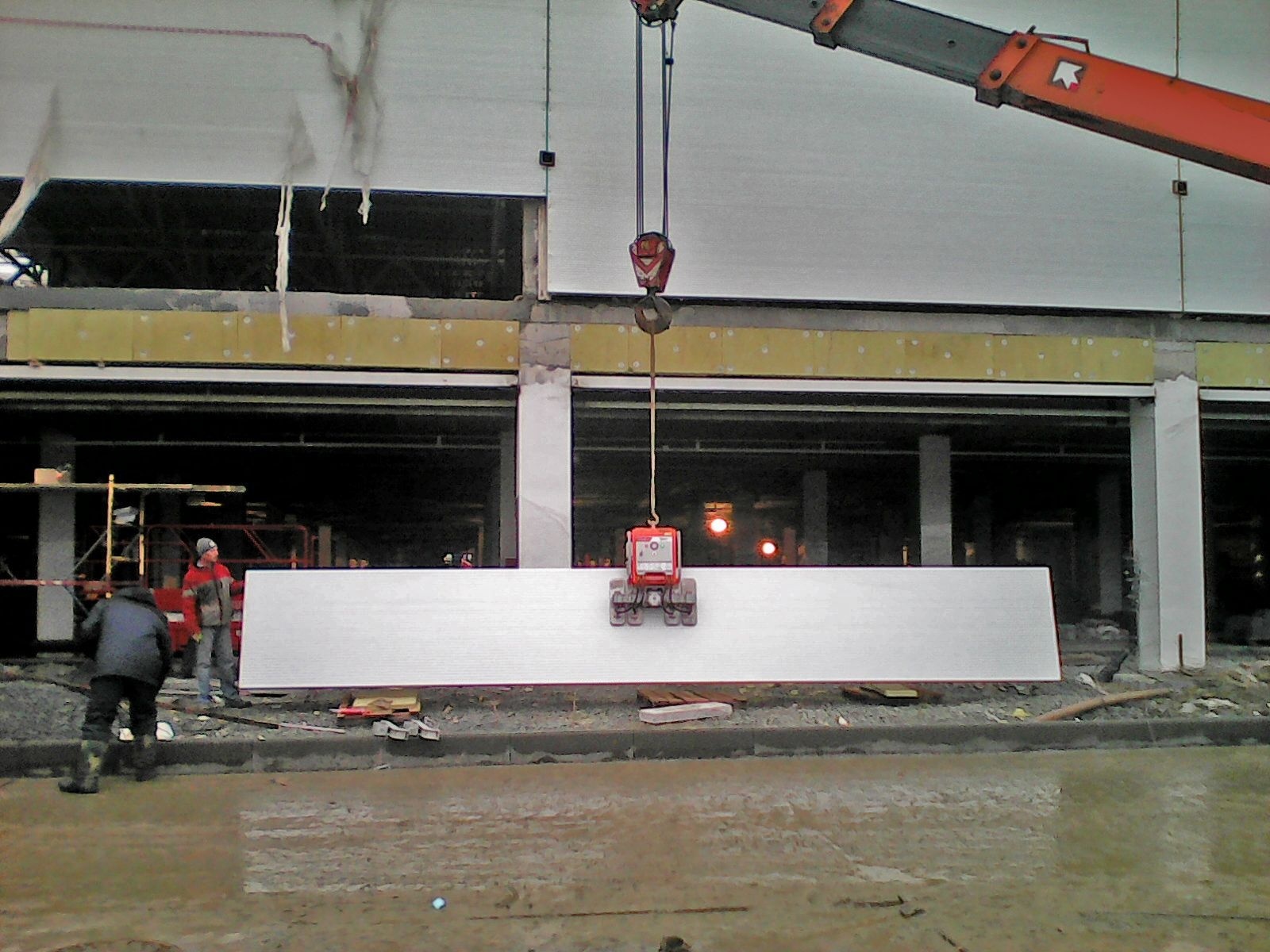 Монтаж сэндвич-панелей 8 метров вакуумным захватом ARLIFTER SP-4.
