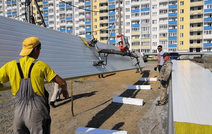 К тому же, неоспоримыми плюсами конструкций из сэндвич-панелей можно назвать низкую стоимость, энергоэффективность и сжатые сроки строительства. Чтобы сохранить все преимущества сооружений подобного типа, монтаж сэндвич-панелей лучше всего производить профессиональным оборудованием. Вакуумный захват ARLIFTER SP-4 – универсальный помощник при горизонтальном, вертикальном и кровельном монтаже сэндвич-панелей длиной до 26 метров.